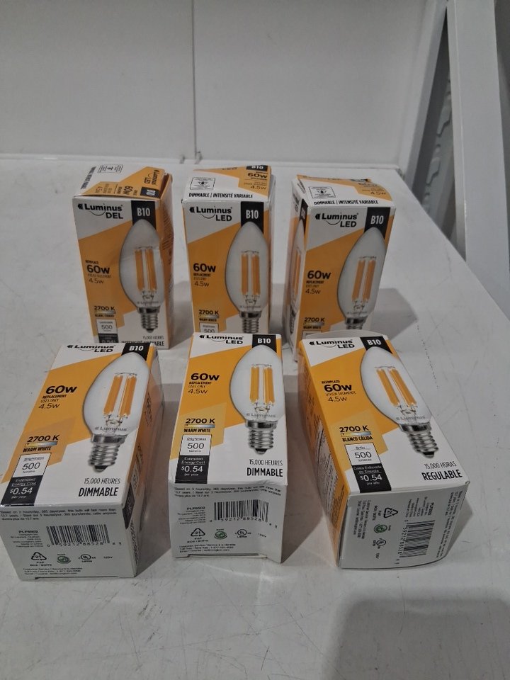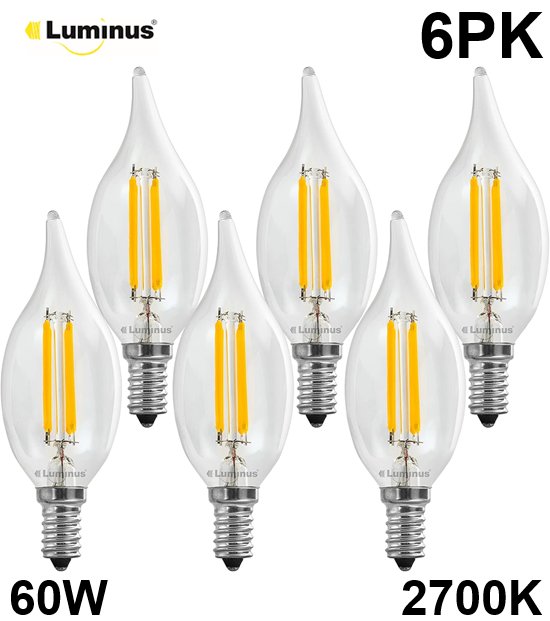 6PK Luminus led Dimmable Filament Bulb - 60W - 2700k - warm white (MODEL: B10)