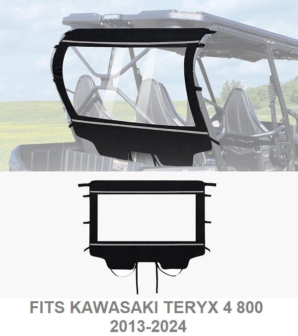 noliven UTV rear window soft windshield - compatible with kawasaki teryx 4 800 2013 to 2024 - black