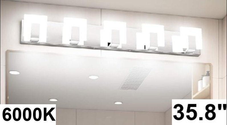 Aipsun Modern LED Bathroom Vanity Light - 6000K - 35.8" - CHROME (model ‎GW-1105)