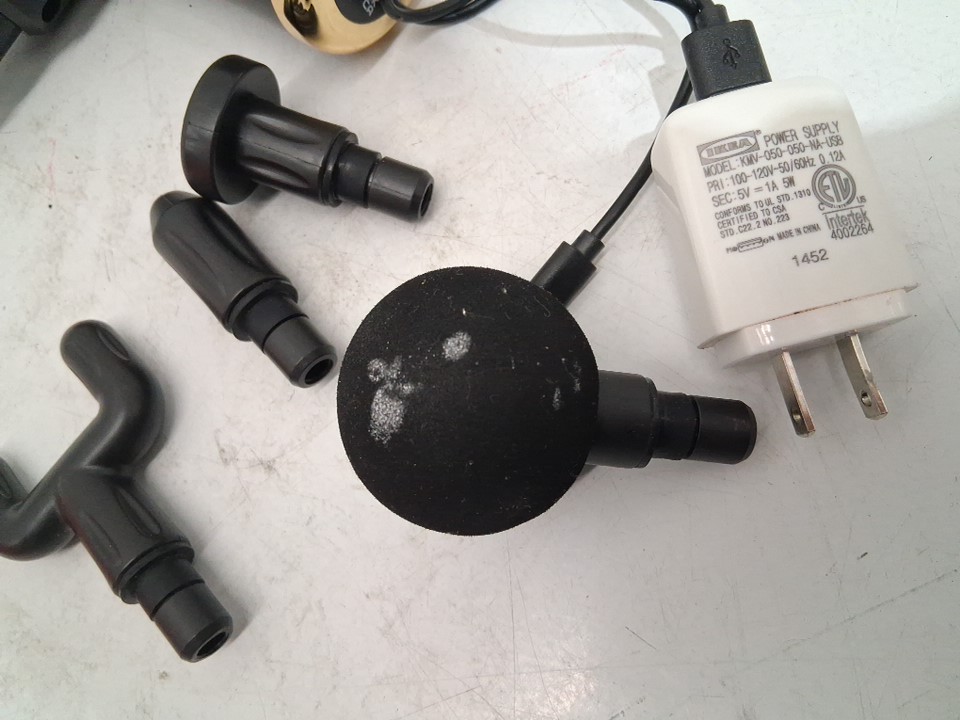 Item has some light scuff marks and white marks on one of the heads. Has been tested for power. (see photos)