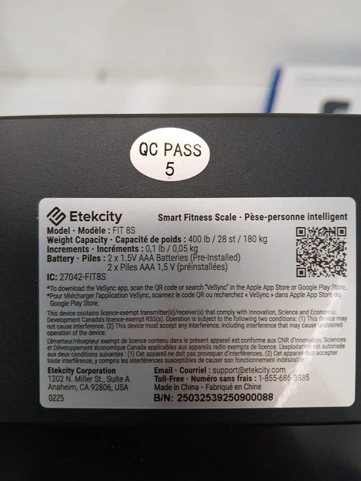 ETEKCITY SMART FITNESS SCALE SYNC WITH BLUETOOTH - 10" X 10" - BLACK (Model: FIT8S)