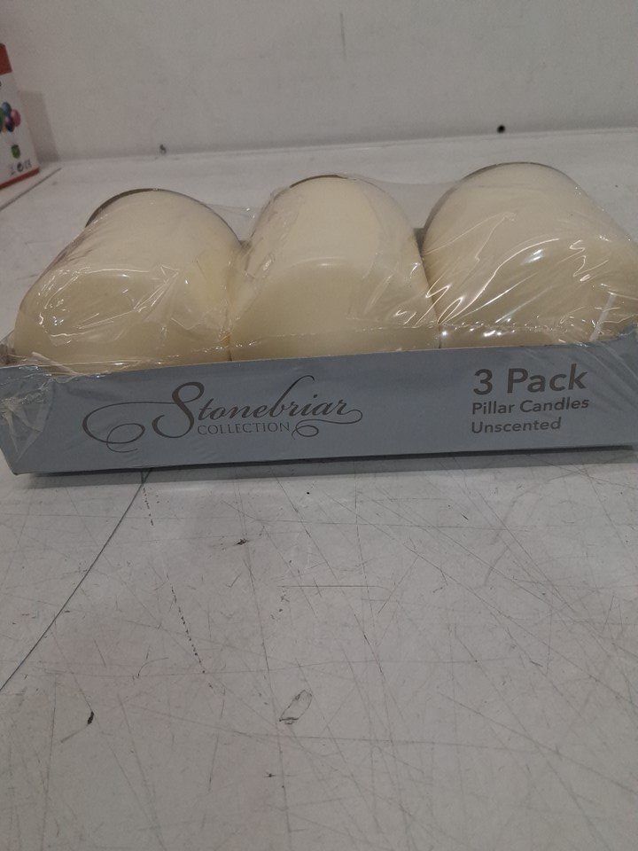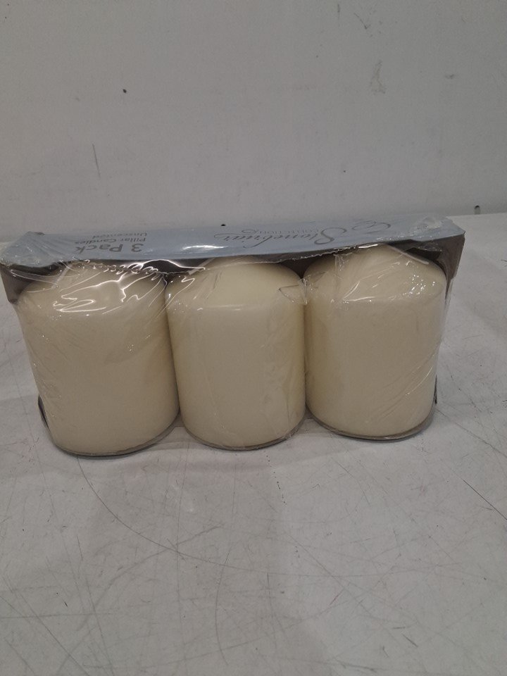 3PK Stonebriar Unscented Wax Pillar Candles - 35 HOUR - 3" - WHITE (MODEL: SB-SP-3209A)