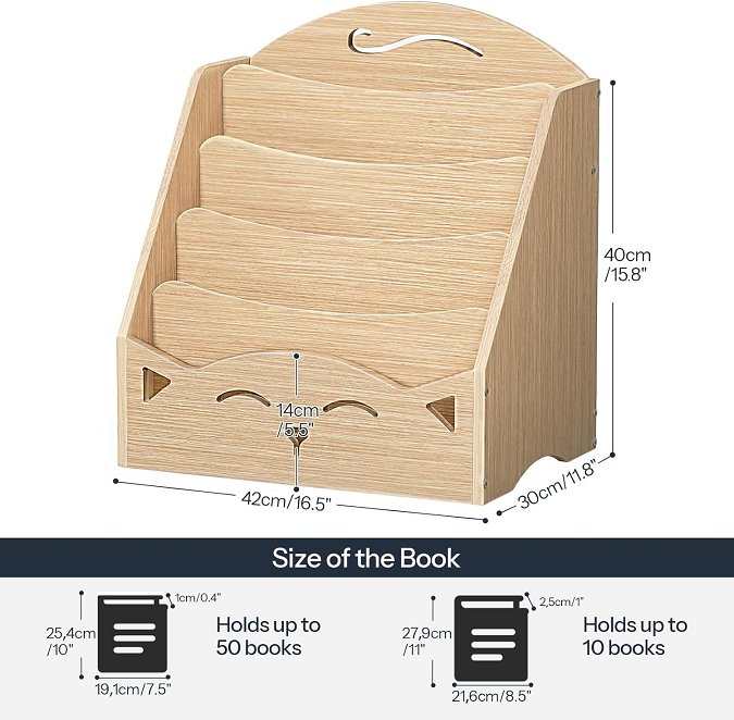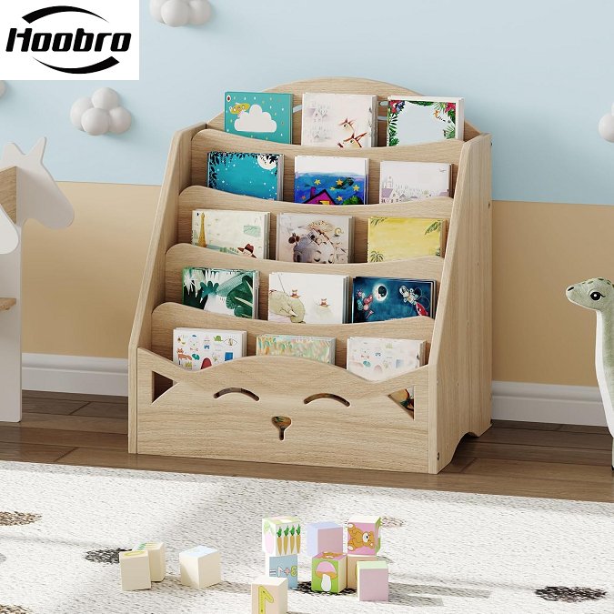 hoobro 5-tier kid's toy storage & bookshelf display shelf, nursery rack - 16.5" x 11.8" x 15.8" h - natural (Model: NL50CW01)