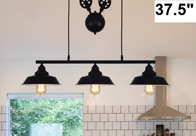 Ganeed Rustic Kitchen Island Pulley Pendant - 37.5" - black (model: PHL-3)