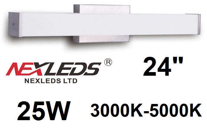 NEXLEDS LED Vanity Light Bar - 24", 25w, 3CCT Switchable 3000k-5000k, 2000LM, Dimmable - brushed nickel (model: NX-VLDR-2F-25W)