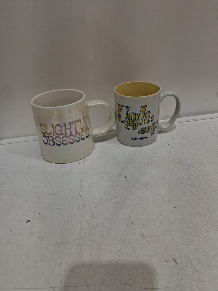 2 ASSORTED Room Essentials Slightly Obsessed Mug / ugh as if! - 160z - 11.5oz - white /yellow