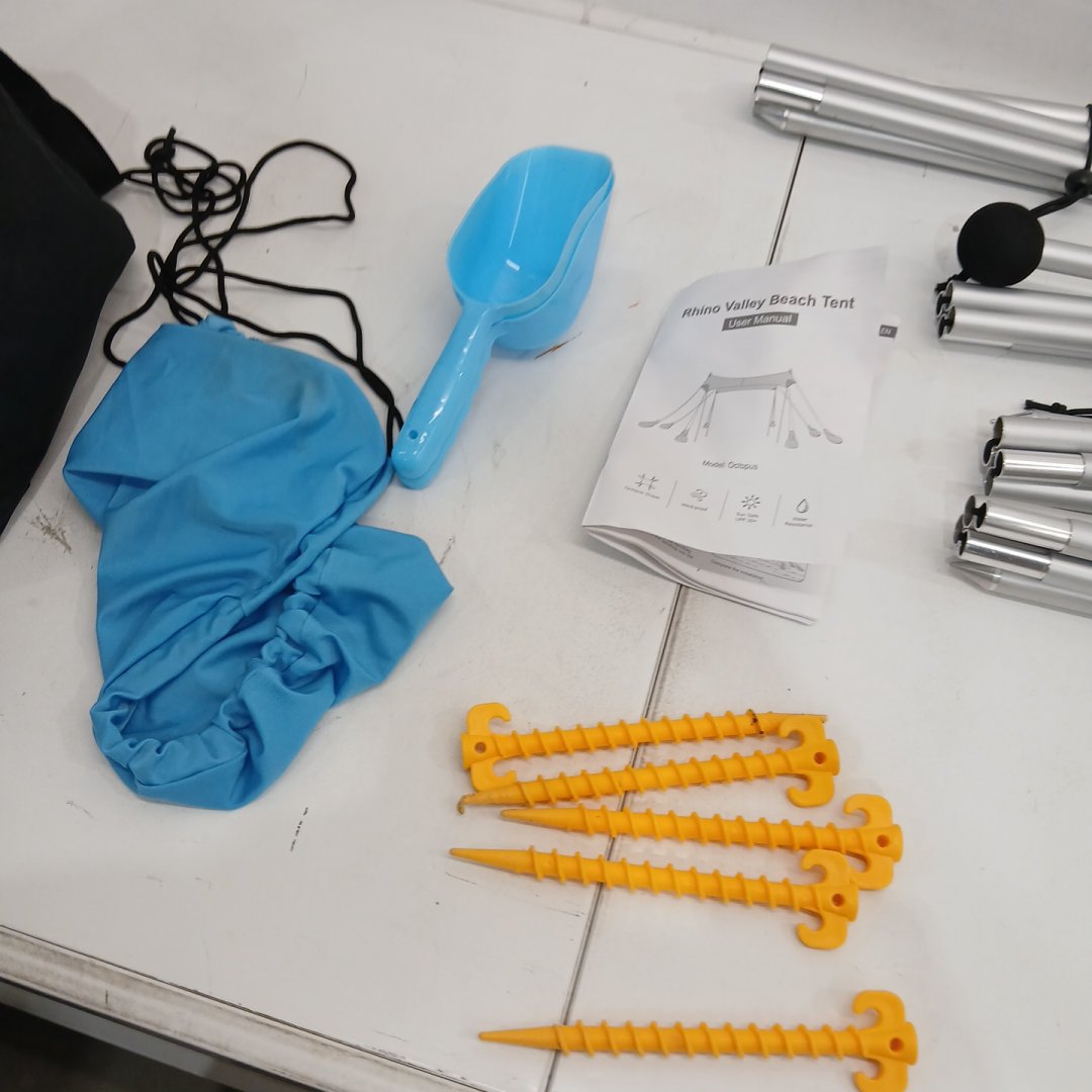 Very small amount of sand found within product, as well as a few minor scuffs on the yellow sand stakes.