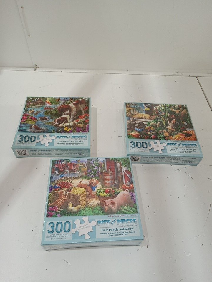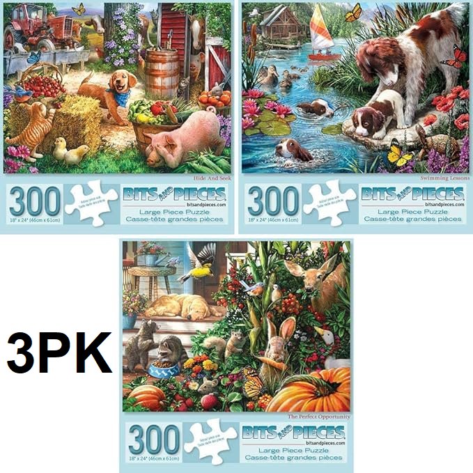 3 300pc bits and pieces farm and animal puzzles - 18" x 24" - multicolor