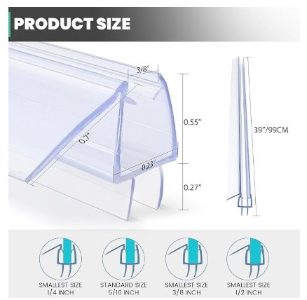 2PC Kinrinjinlin Shower Door Bottom Seal PVC Strip, Fits for 3/8"(10mm) Thick Frameless Glass Door Panel - 39" - CLEAR