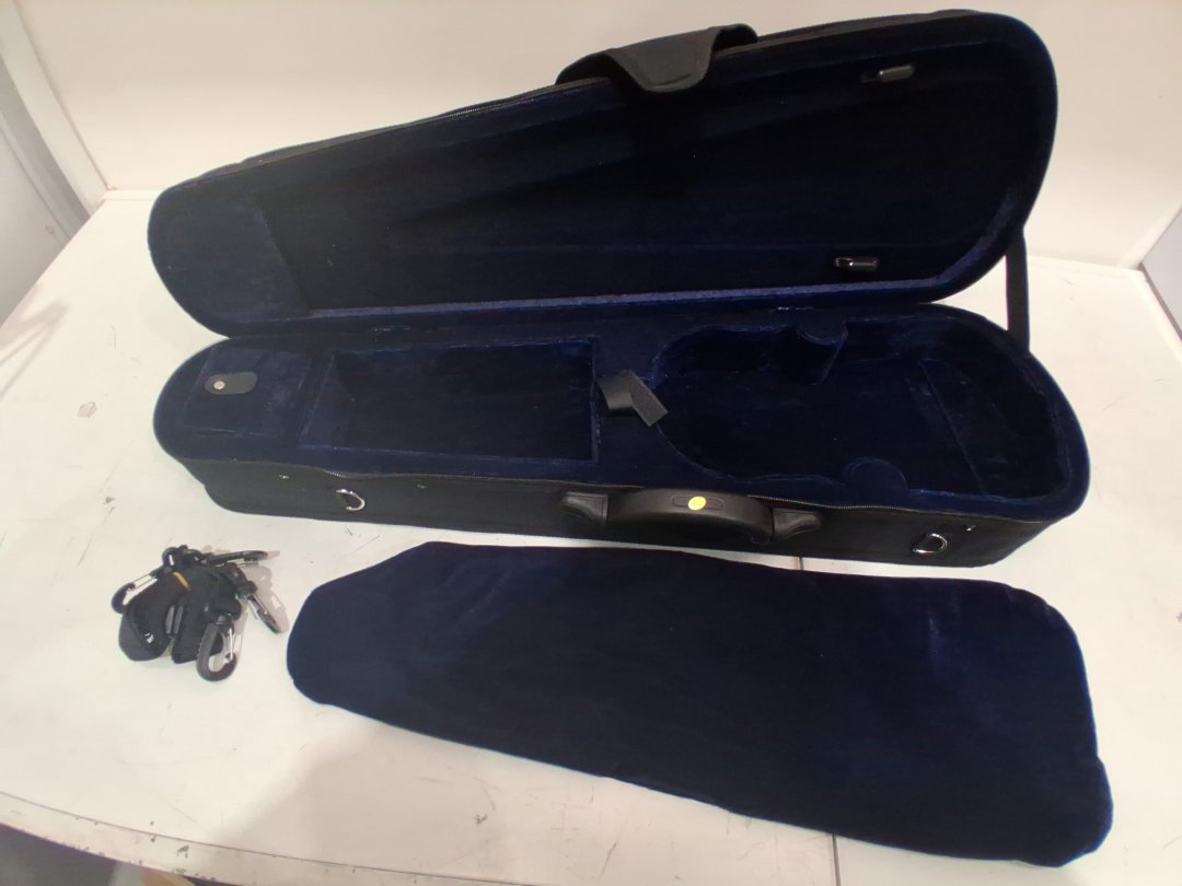 adm soft/plush interior violin/fiddle hard shell carrying case with handle/strap - blue/black - 1/8 size