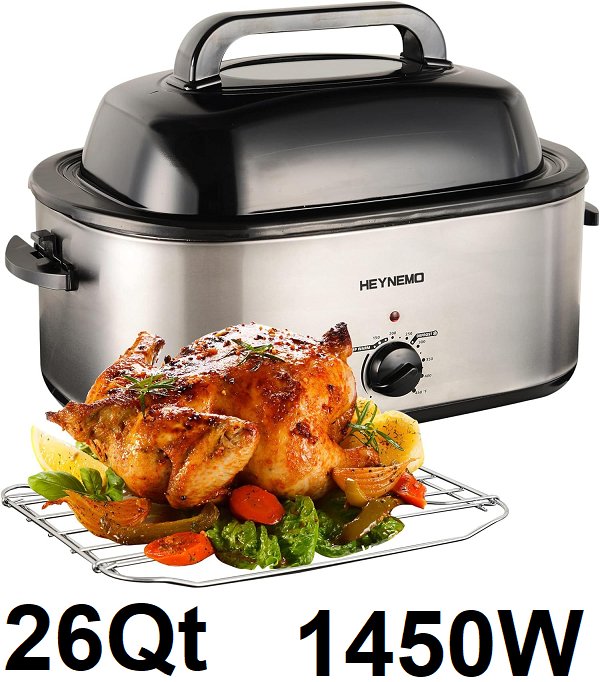 Hey Nemo Electric Roaster Oven, Turkey Roaster with Viewing Lid - 26 Quart - 1450W - Stainless Steel (Model: ZER002SL-11-HM)