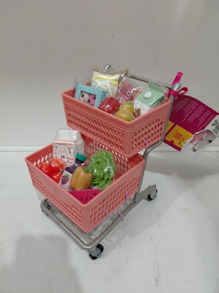18pc our generation Double Basket grocery Shopping Cart supermarket play - for 18" doll - pink (MODEL: bd35422z)