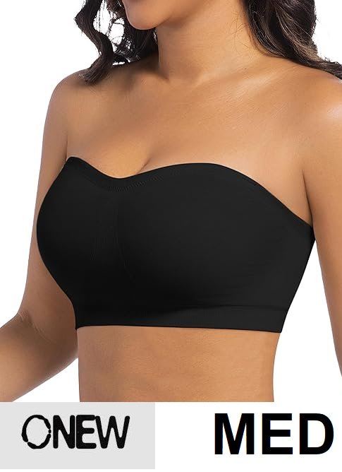 women's ONEW Strapless Seamless Wireless Non-Slip Silicone Bandeau Bra - medium - black