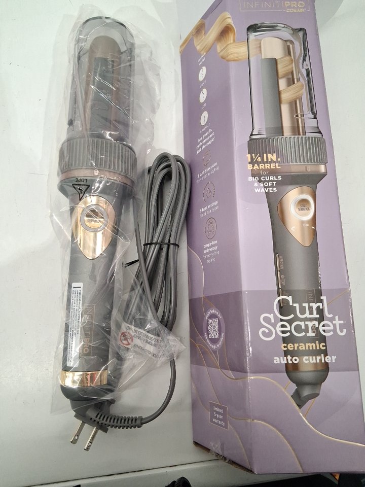 CONAIR INFINITIPRO CURL SECRET CERAMIC AUTO CURLER - 1 1/4" BARREL - GREY/ROSE GOLD (model: CD1032C)
