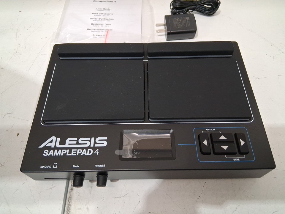 Alesis Sample Pad 4 Compact Percussion and Sample Triggering Instrument with 4 Velocity Sensitive Pads, 25 Drum Sounds and SD/SDHC Card Slot
