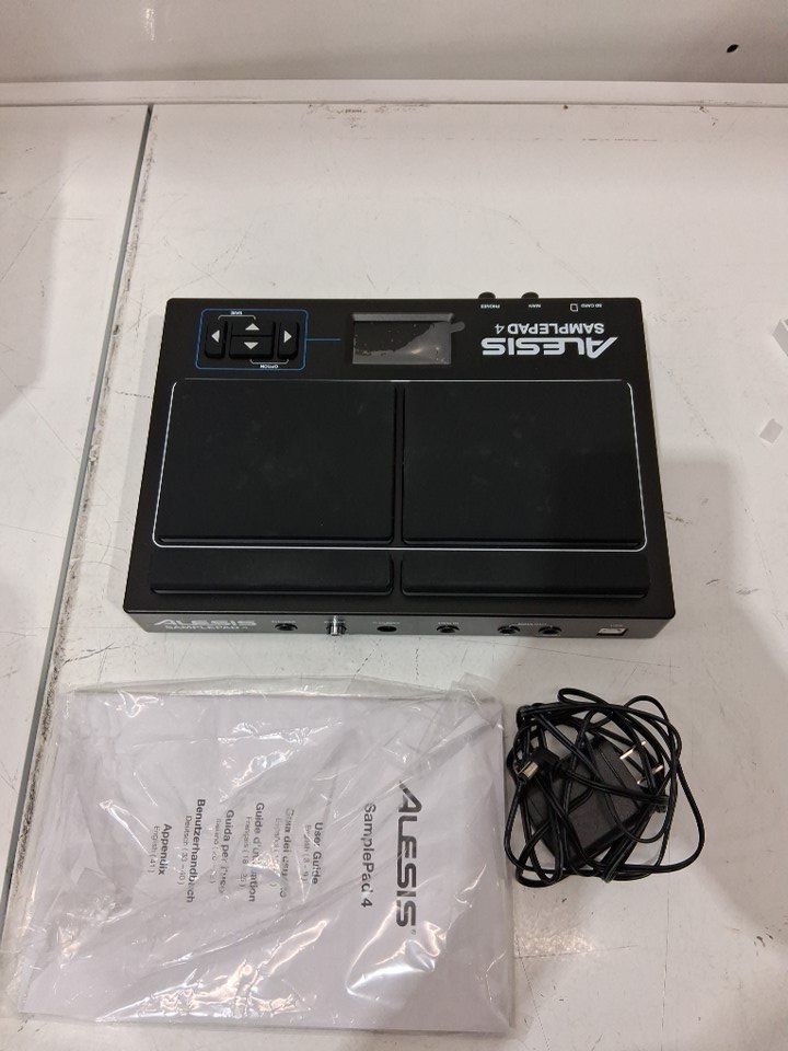 Alesis Sample Pad 4 Compact Percussion and Sample Triggering Instrument with 4 Velocity Sensitive Pads, 25 Drum Sounds and SD/SDHC Card Slot