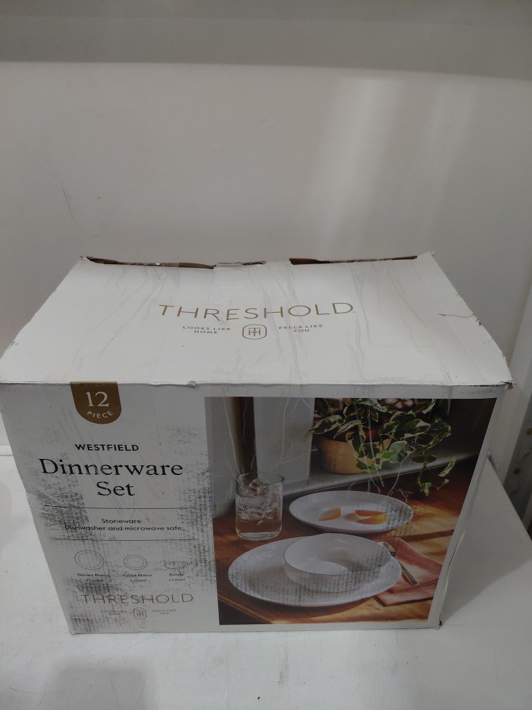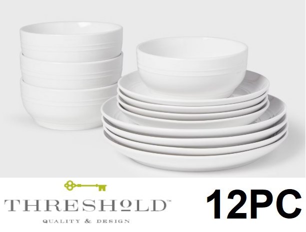 12PC THRESHOLD QUALITY & DESIGN WESTFIELD STONEWARE DINNERWARE SET - 4 CEREAL BOWLS, 4 SALAD PLATES, 4 DINNER PLATES - ivory