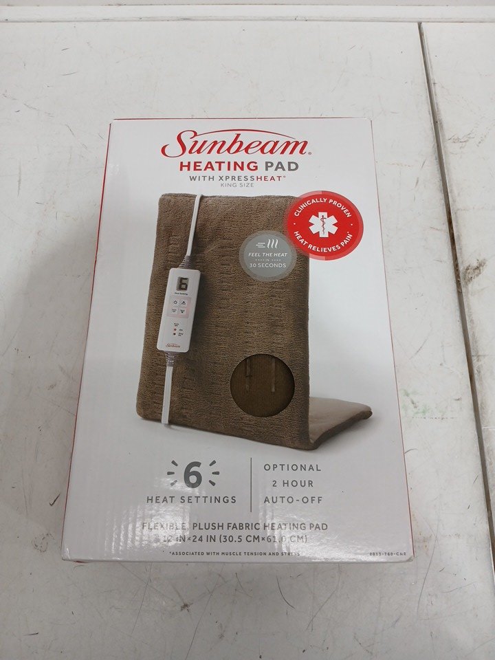 SUNBEAM XPRESSHEAT 6-SETTING PLUSH HEATING PAD - KING SIZE (12" X 24") - BROWN (MODEL: 2013-760-CNR)