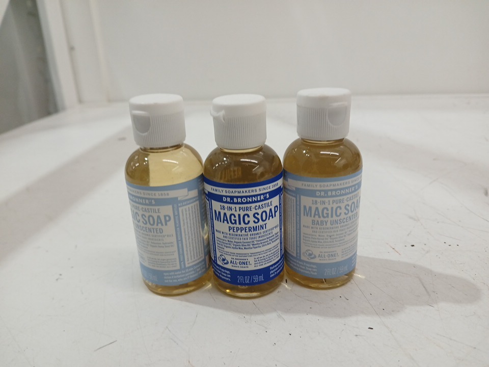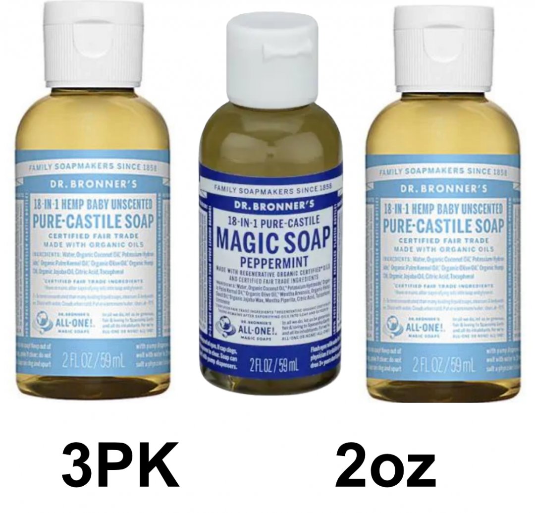 3pk Dr. Bronner's Pure-Castile Soap - Peppermint + Unscented - 59ml/2oz each