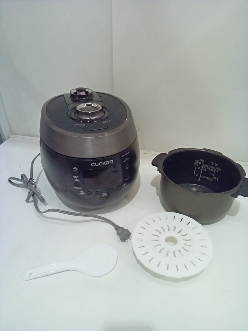 set is missing the cup. water stains inside pot and under lid from previous use.
