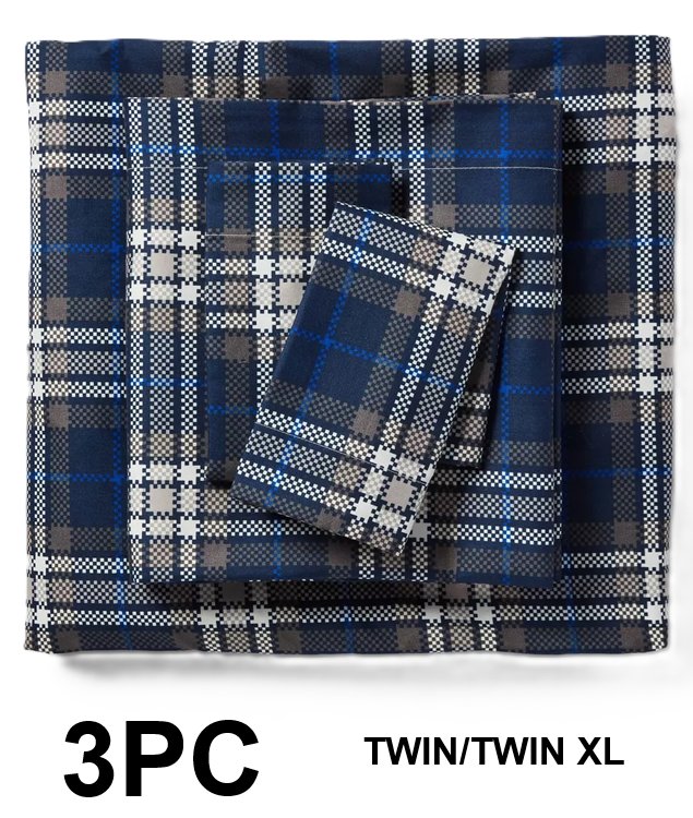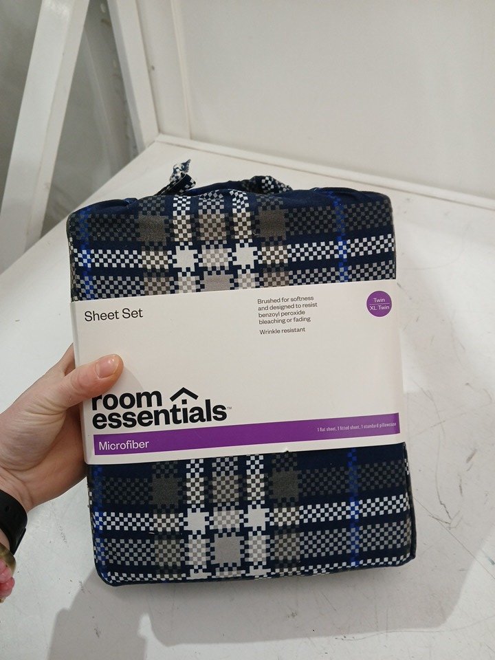 3pc Room Essentials Microfiber Sheet Set - twin/twin xl - blue plaid