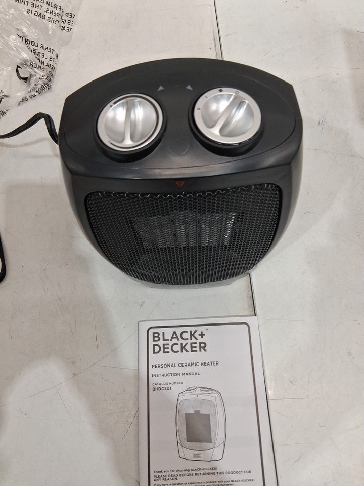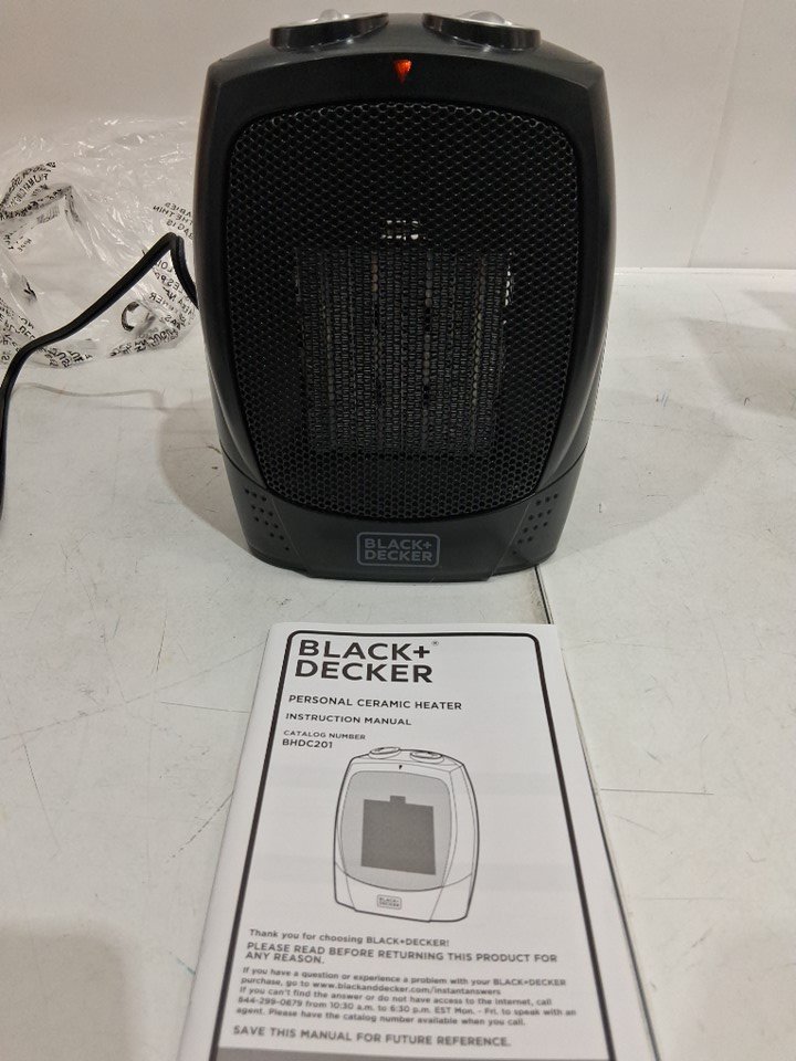 BLACK + DECKER PORTABLE 2-IN-1 SPACE HEATER WITH CARRY HANDLE, OVER-HEAT PROTECTION & TIP-OVER PROTECTION, 1500W - BLACK (MODEL: BHDC201)