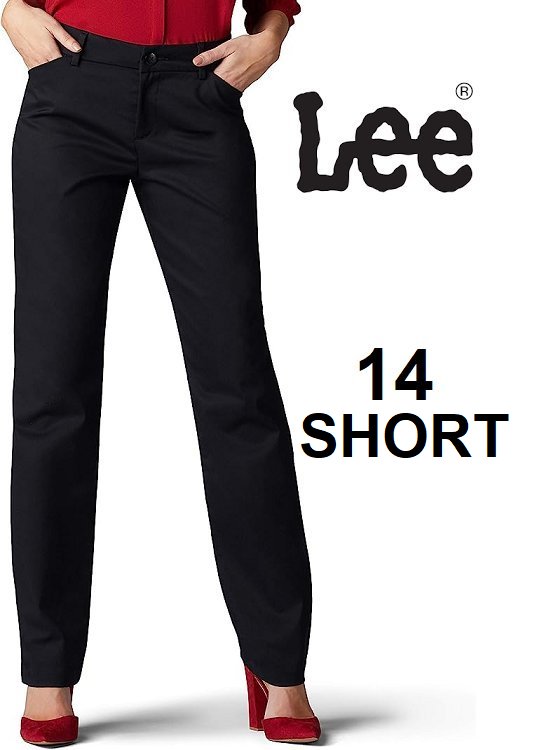 WOMENS LEE WRINKLE FREE RELAXED MIDRISE STRAIGHT LEG PANT - SIZE 14 SHORT - BLACK (STYLE: 104637501)