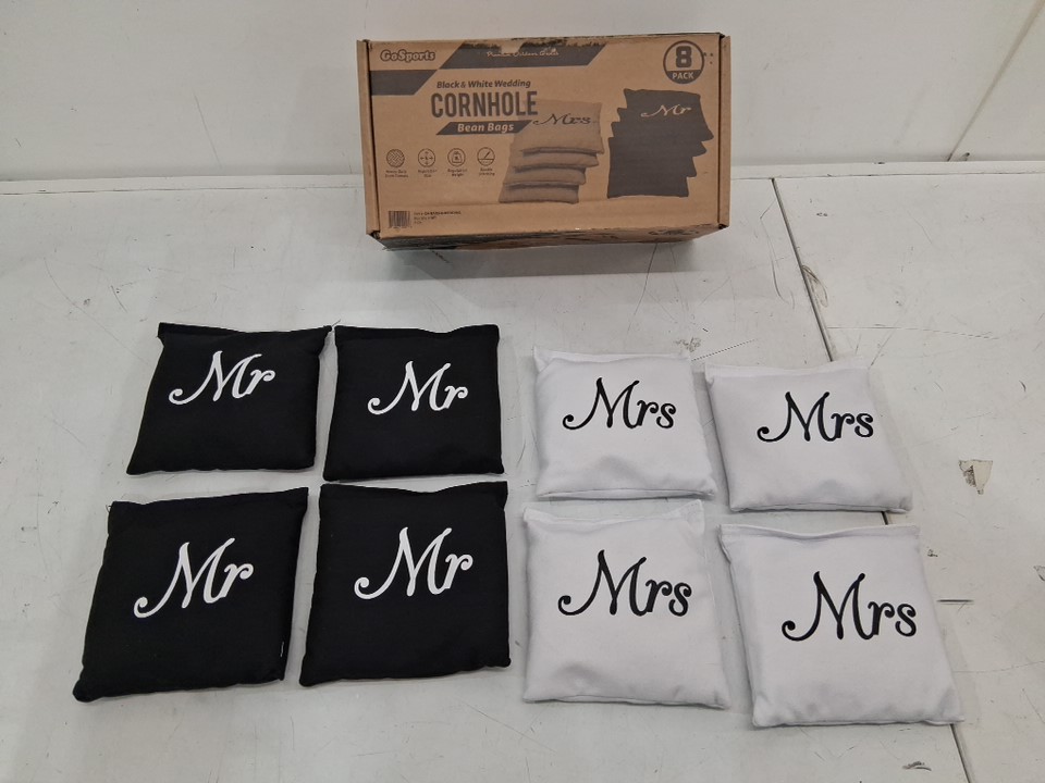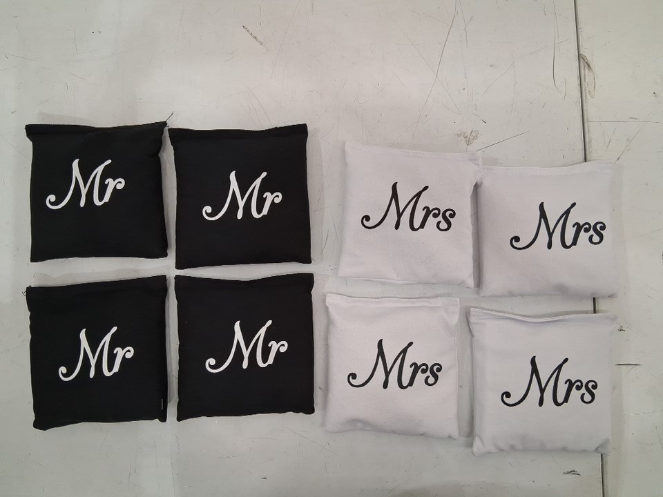 8PK GoSports Wedding Theme Cornhole Bag Set - MR AND MRS - WHITE/BLACK