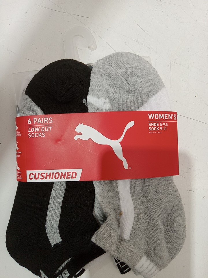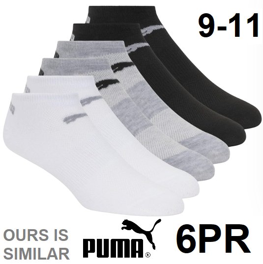 6PR womens puma no show socks - SIZE 9-11 - black/white/GREY