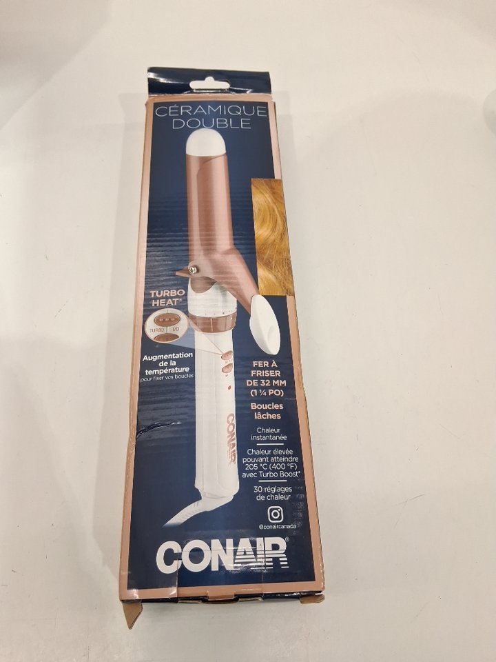 CONAIR DOUBLE CERAMIC CURLING IRON - 1 1/4" BARREL - WHITE/ROSE GOLD (MODEL: CD702GNC)