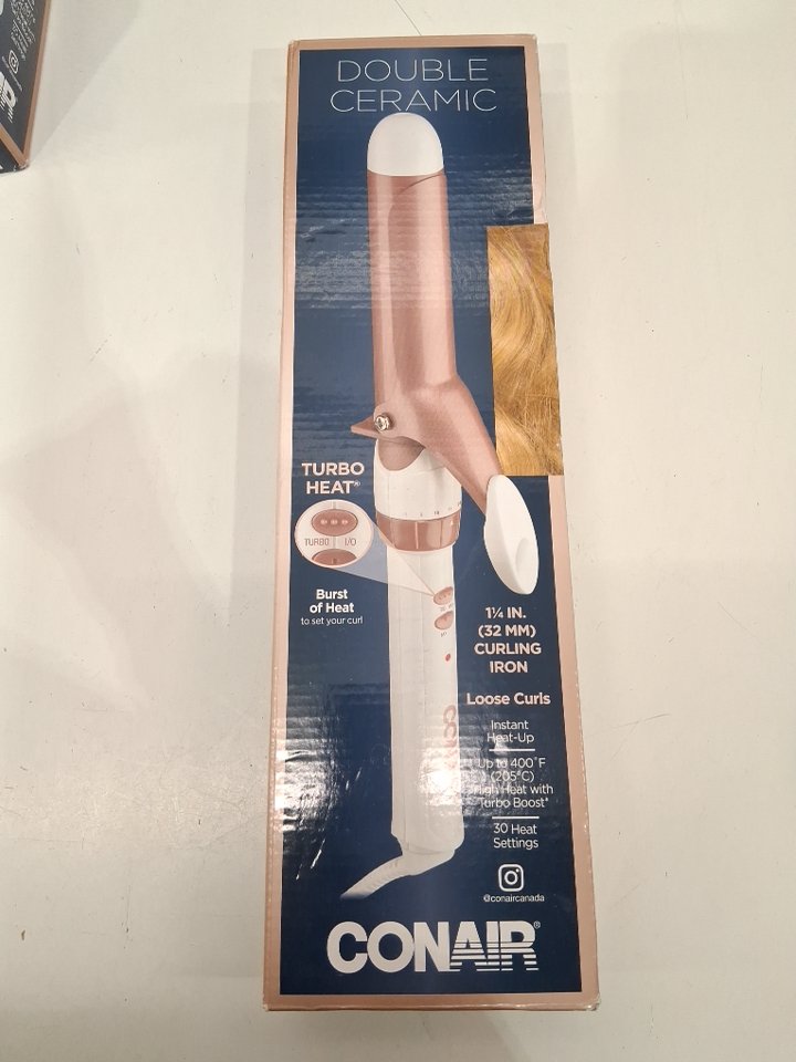 CONAIR DOUBLE CERAMIC CURLING IRON - 1 1/4" BARREL - WHITE/ROSE GOLD (MODEL: CD702GNC)