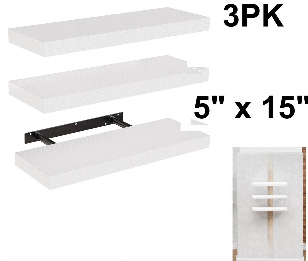 3PK AMADA HOMEFURNISHING Matte Finish Floating Shelves - 5" x 15" - white (model: AMFS08)