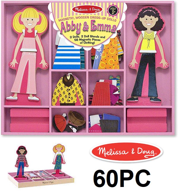 60PC MELISSA AND DOUG ABBY AND EMMA MAGNETIC DRESS UP DOLLS