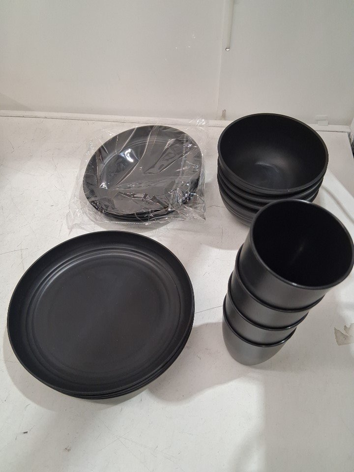 16pc nikoniko wheat straw plastic dinnerware set - black