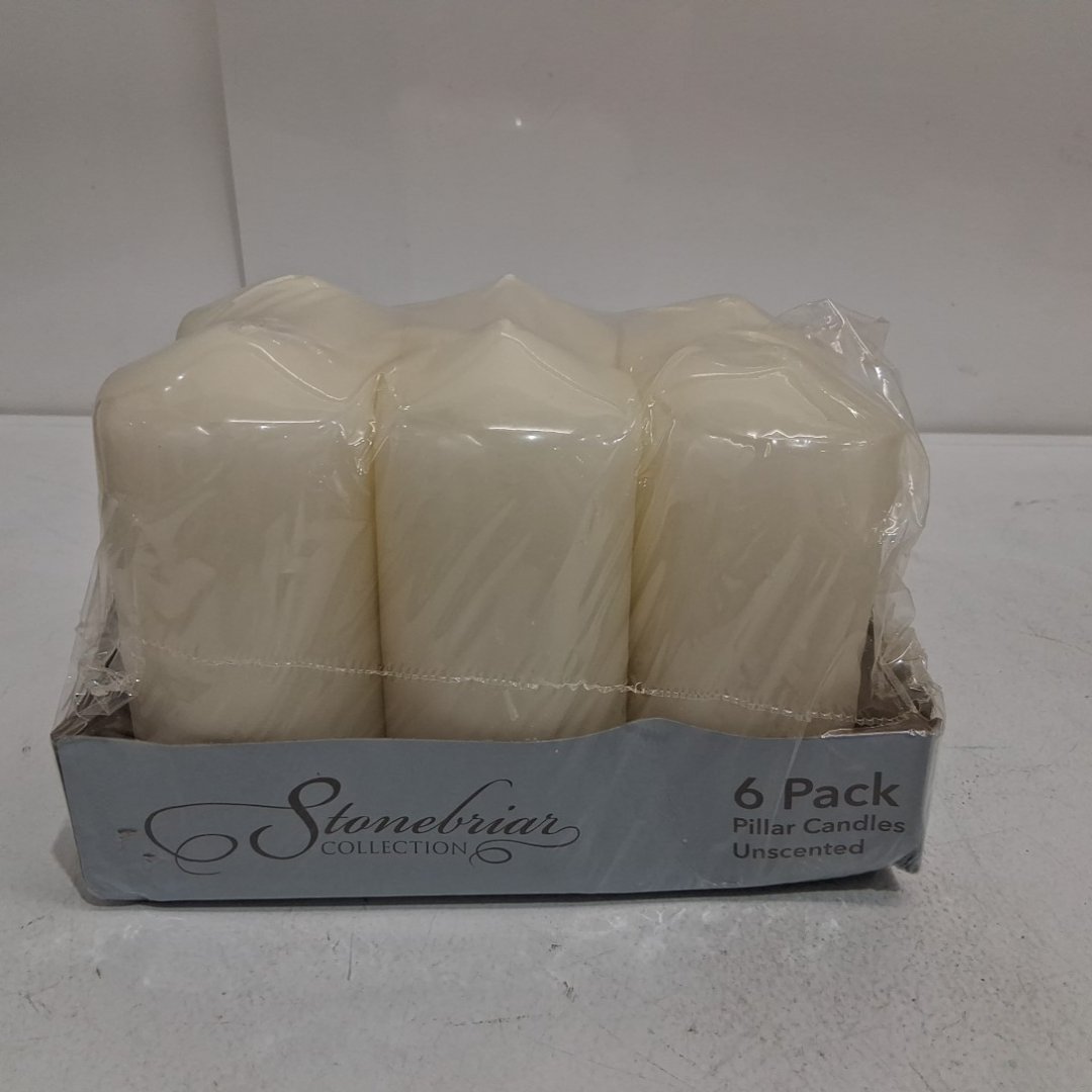 4PK Stonebriar Tall 3 x 6 Inch Unscented Ivory Pillar Candle Set, 65H+ Burn Time (SB-SP-3548A)