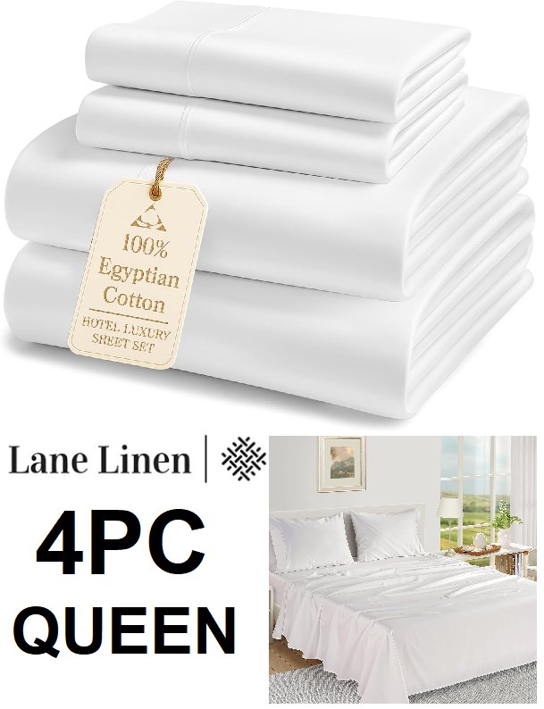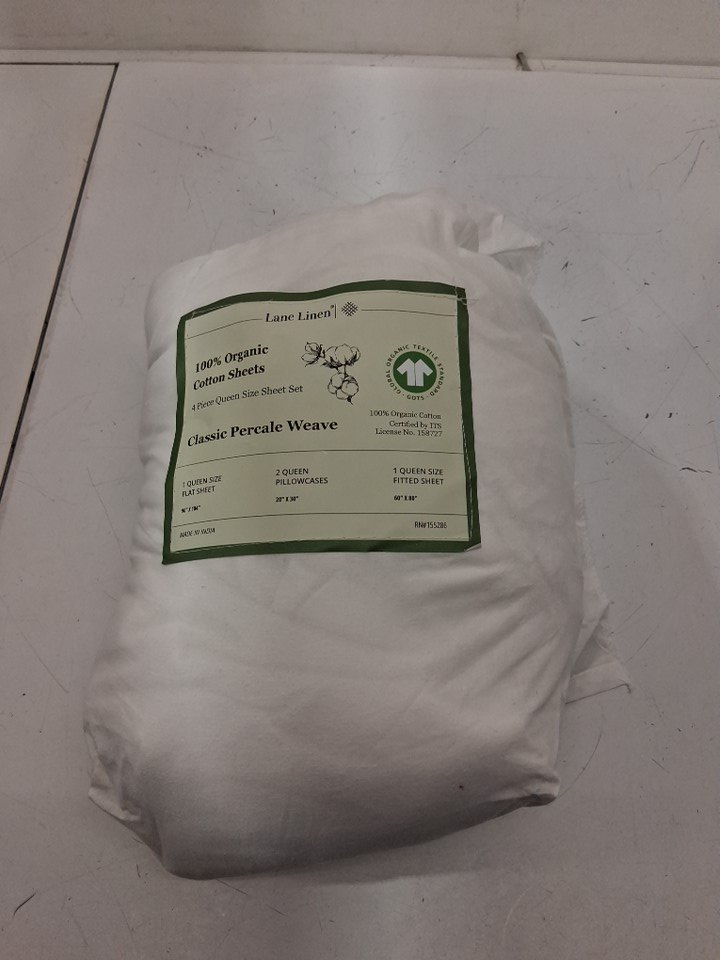 4pc lane linen 100% organic cotton sheet set - classic percale weave - queen - white