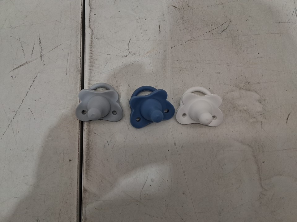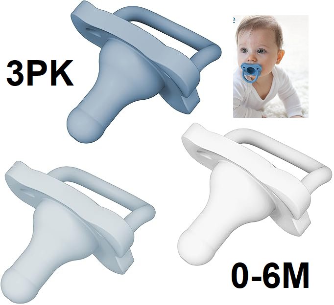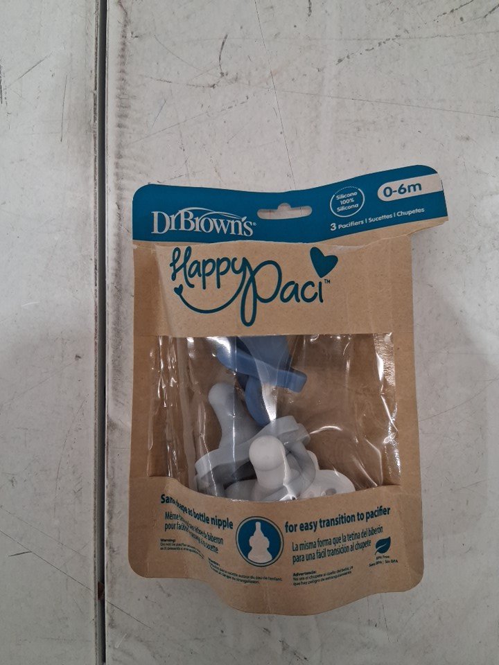 3PK DR BROWNS HAPPYPACI 100% SILICONE BPA FREE PACIFIERS - 0-6 MONTHS - WHITE/LIGHT BLUE/BLUE