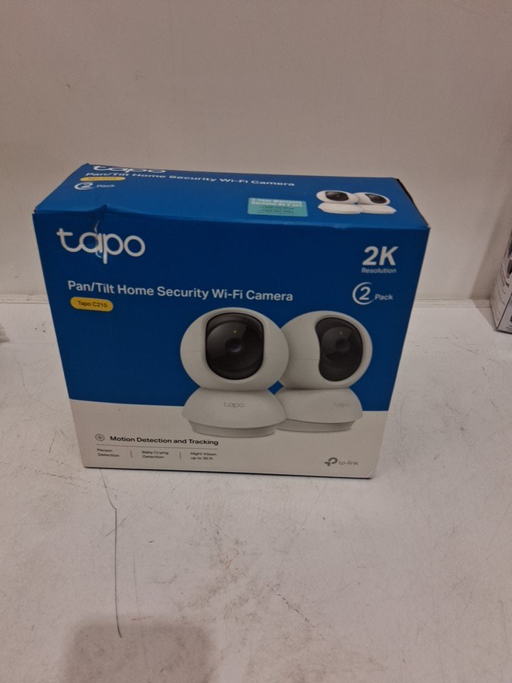 2PK TP-Link Tapo Smart Pan Tilt Home WiFi security Camera -2K Nightvision, motion detection, works with Alexa and Google assistant - white (Model: C210)