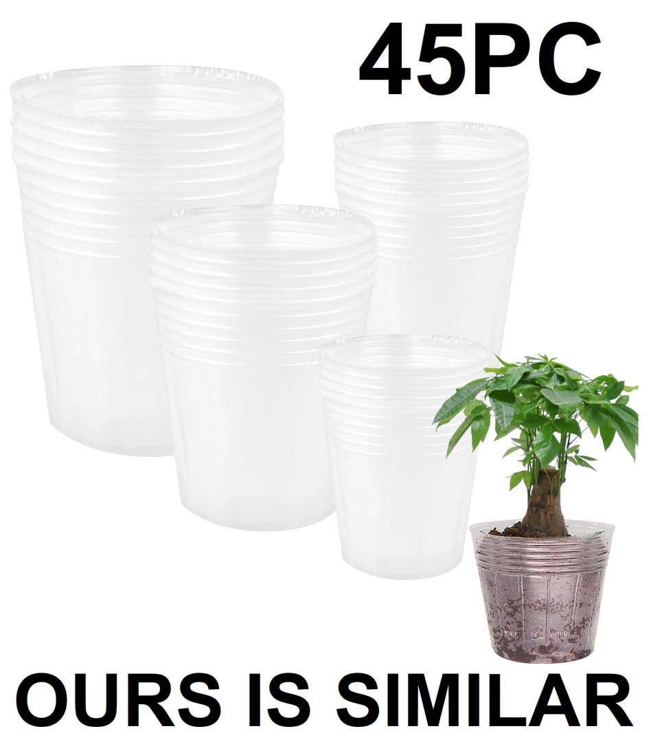 45PC Clear Plant Nursery Pot Transparent Plastic Planter with Drainage Hole - CLEAR