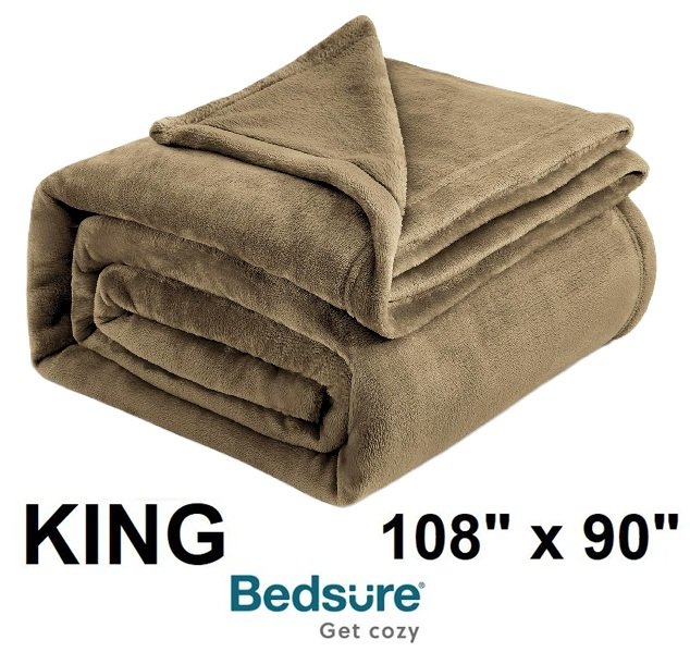 BEDSURE Fleece Cozy Soft Blanket - KING - 108" x 90" - light brown