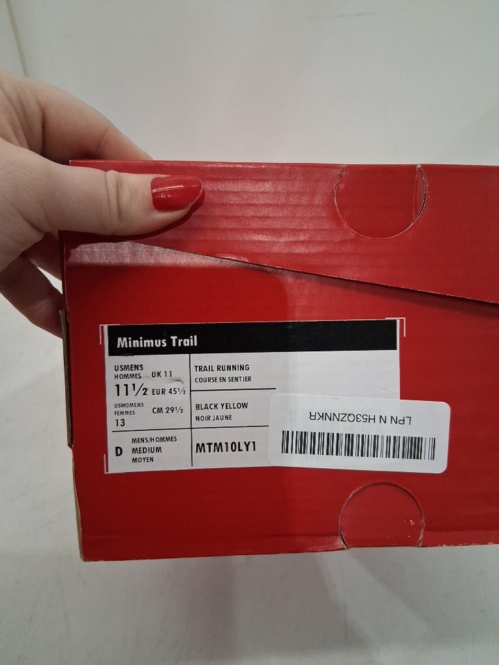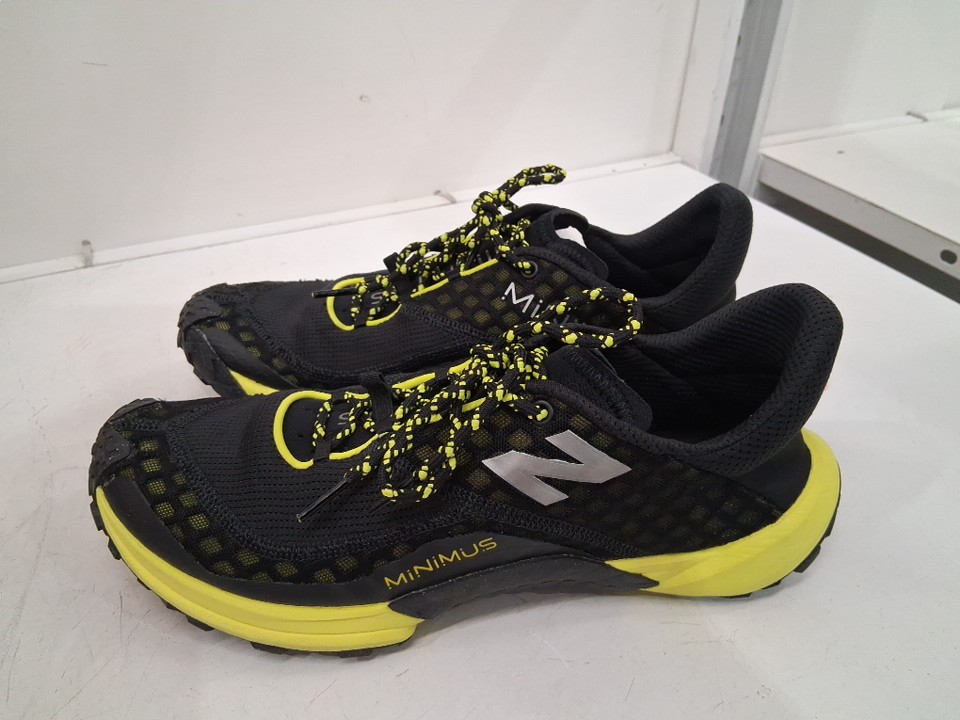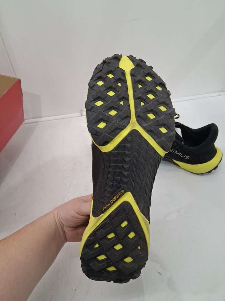 MENS NEW BALANCE MINIMUS TRAIL RUNNING SHOES - 11.5 - BLAKC/YELLOW