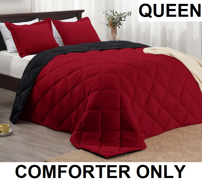 BASIC BEYOND REVERSIBLE COMFORTER BLANKET - QUEEN - RED, BLACK