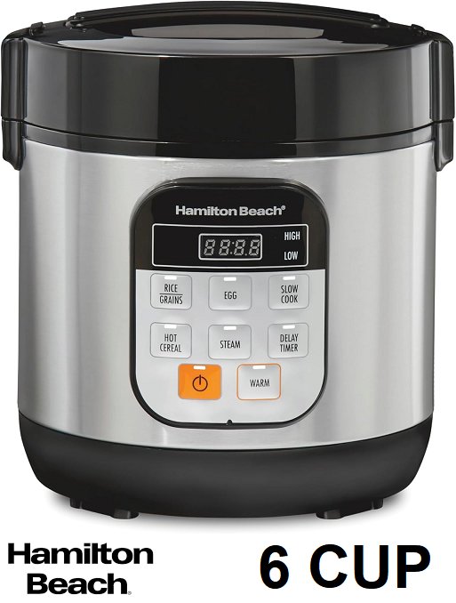 Hamilton Beach Digital Programmable Rice Cooker & Food Steamer - 6 CUP - STAINLESS STEEL / BLACK (MODEL: 37524MN)