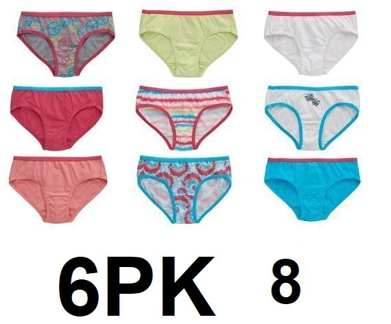 6pk girls hanes tagless hipster underwear - size 8 - assorted colors