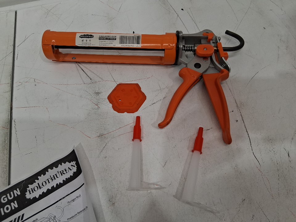 Holothurian Heavy-Duty Aluminum Adjustable Caulking Gun with Built-in Nozzle Cutter and Puncture Tool, Two Nozzles and Scraper - 12:1 & 25:1 Thrust Ratio - Orange (Model: LU-CG819P)