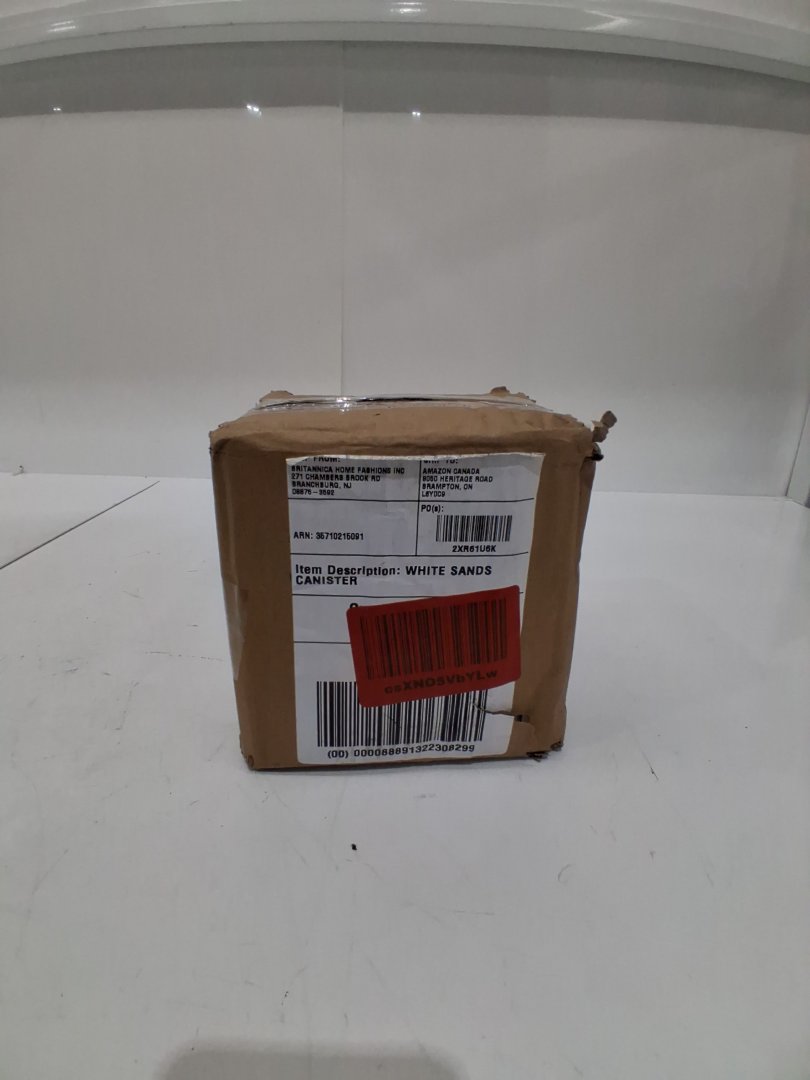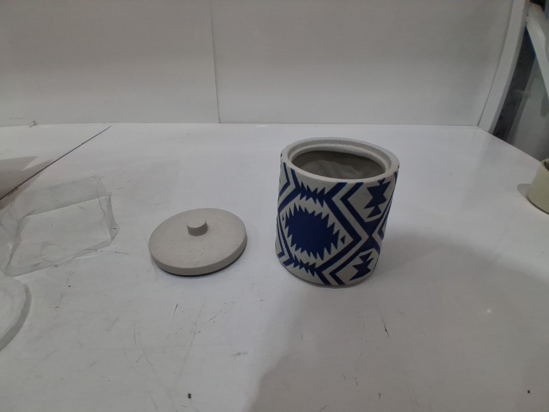 white sands canister Bathroom organizer/storage - 4.2" x4.9" - blue/white