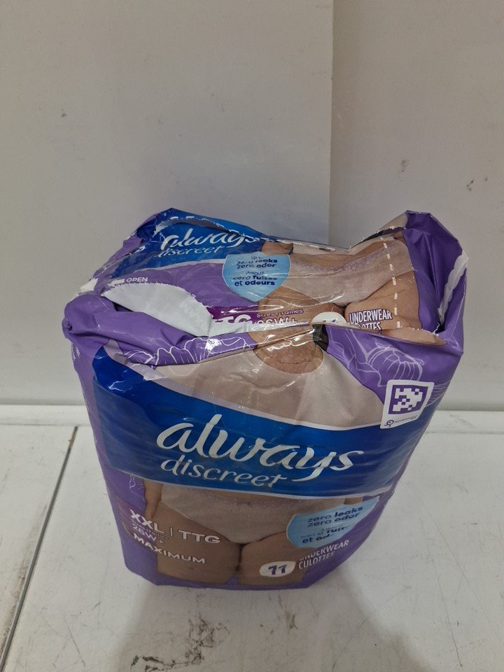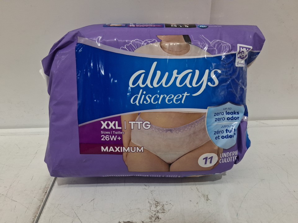 11PK WOMEN'S ALWAYS DISCREET INCONTINENCE UNDERWEAR - MAXIMUM ABSORBENCY - Size 26W+ XXL - Light Pink