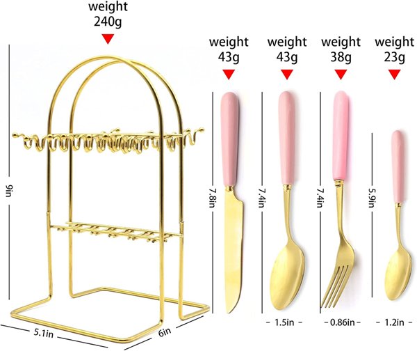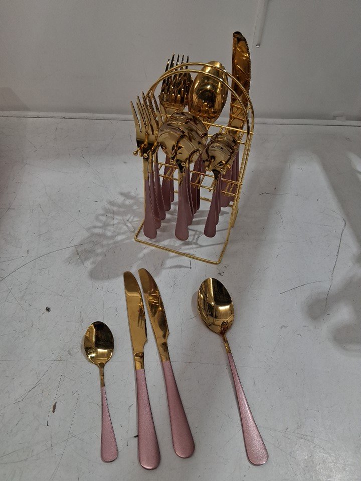 22PC Caliamary silverware cutlery flatware set with holder - assorted sizes - gold/pink