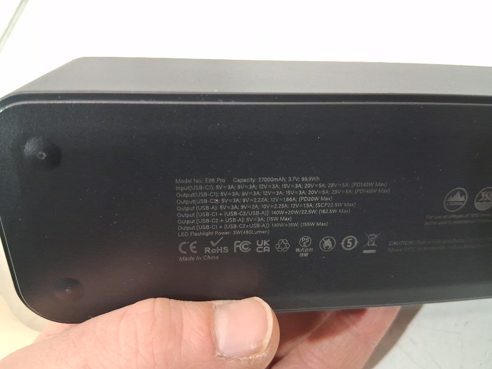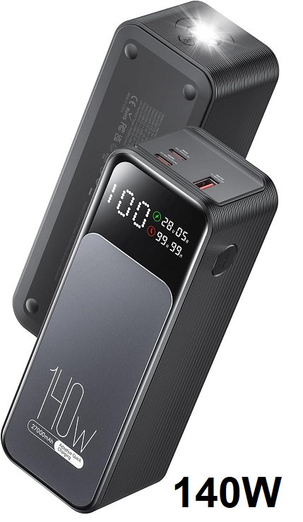 Jescuok Laptop Power Bank with light - 140W 27000mAh (99.9Wh) PD 3.1 USB C in&Out - black - (model:e86 pro)