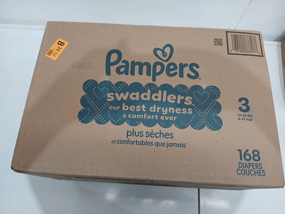 168PK PAMPERS SWADDLERS DISPOSABLE DIAPERS - SIZE 3 - (16-28LBS)